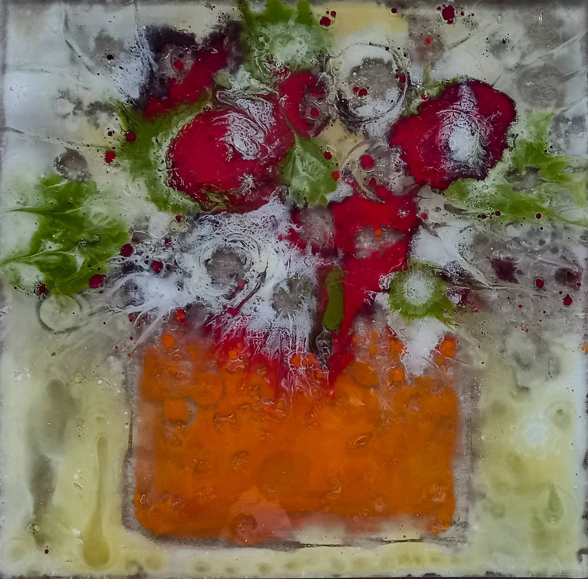 Obraz szklany „Czerwone kwiaty w wazonie” to wyjątkowa dekoracja ścienna wykonana ręcznie w technice fusingu. Intensywna czerwień kwiatów zestawiona z delikatną formą wazonu tworzy harmonijną kompozycję, która ożywia wnętrze i przyciąga spojrzenia.