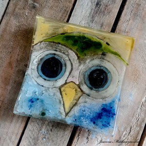 Mała patera, talerzyk o wymiarze 14cm x 14cm z motywem sowy. Idealna na drobny upominek jako talerzyk na biżuterię, pod świece lub talerzyk pod filiżankę.