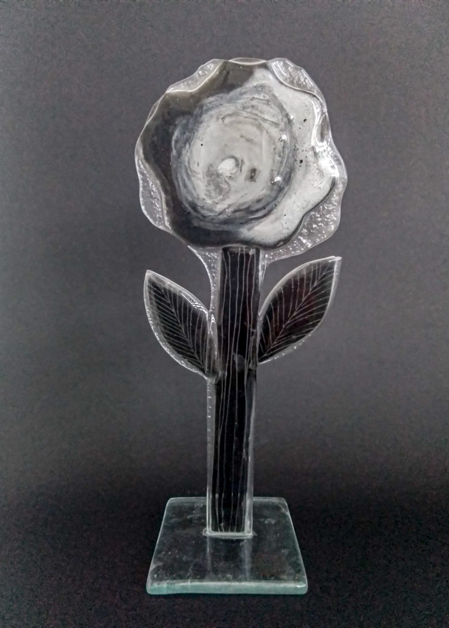 Szklany kwiat statuetka -czarno-biały