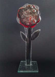 Szklany kwiat statuetka -czarno-czerwony 2